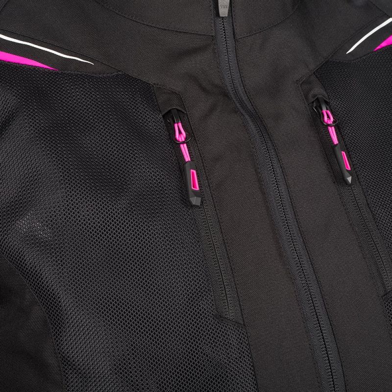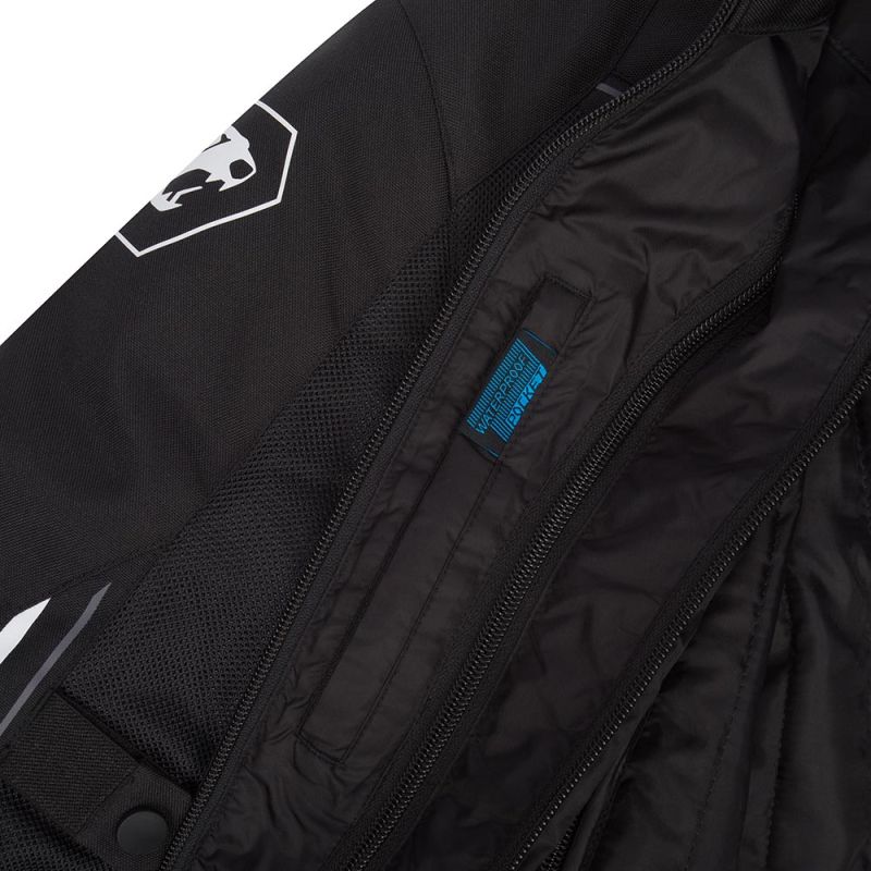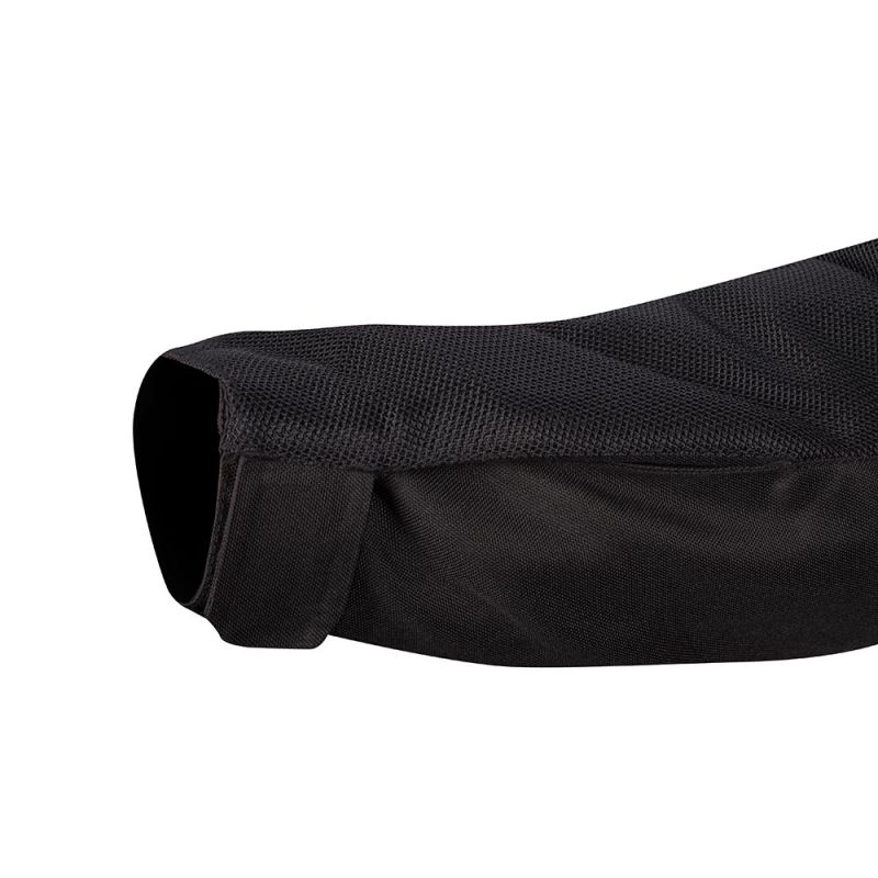 Le confort de conduite est soigné notamment grace e grâce à des solutions techniques dédiées au bien-être du motard tel que le système antibattement aux manches élimine les flottements désagréables à haute vitesse. Le passage d'une configuration été, grâce aux larges inserts mesh, à une configuration mi-saison ou hiver se fait en un clin d'œil, vous assurant de rouler toujours à la température idéale. Le passant pour raccordement au pantalon vient parfaire cet ensemble, évitant les entrées d'air froid et assurant une continuité de protection exemplaire.