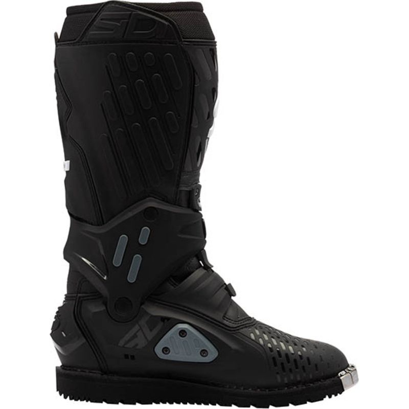 La Crossair HD est la première botte au monde conçue spécialement pour les disciplines de hard enduro et de super enduro. Elle offre toute la robustesse d’une botte haut de gamme Sidi, avec un poids de seulement 1700 grammes (taille 43), bien plus légère que toutes les autres. Un exosquelette interne renforcé en fibre de verre assure un soutien et une sécurité complets tout en maintenant une structure ultralégère. Sa semelle en caoutchouc est cousue directement à la tige, avec un design et un composé dérivés des bottes de trial. Cela permet à la botte d’être légère, protectrice et d’offrir une adhérence inégalée, que ce soit sur les repose-pieds ou sur tous les types de terrain rencontrés en hard enduro.