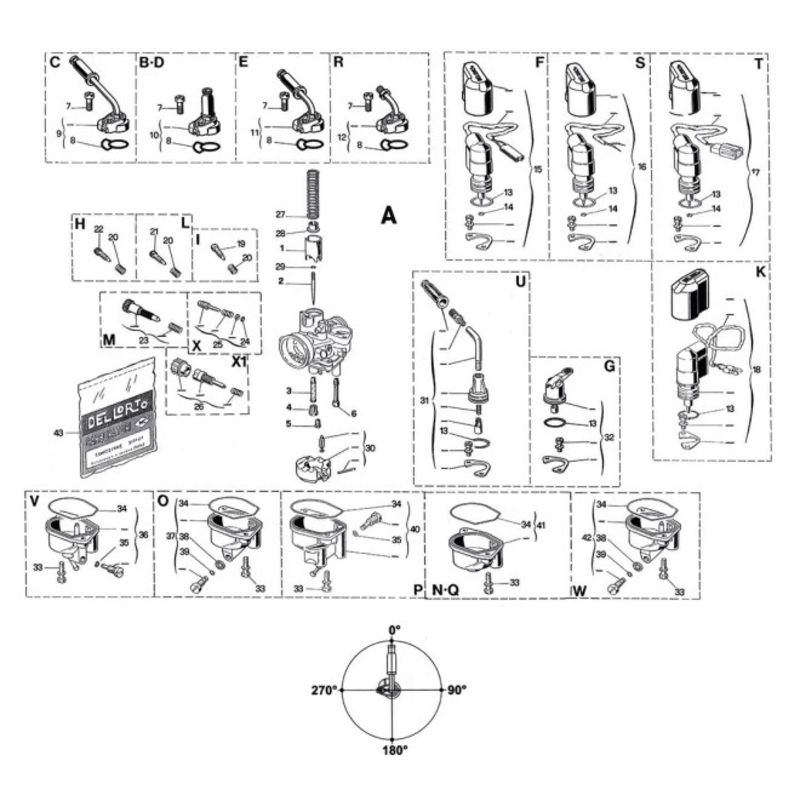 Carburateur DELL'ORTO PHVA 17.5 Pour moteurs 50cc de scooter. Particulièrement indiqué pour les moteurs Minarelli horizontaux