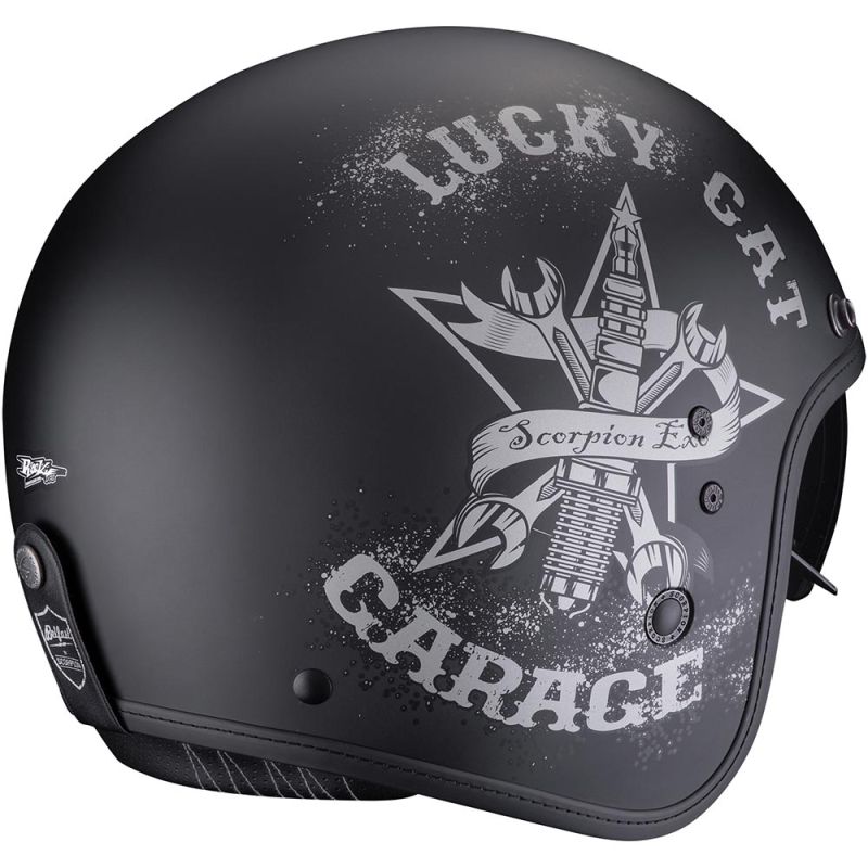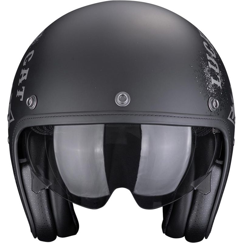 Casque moto jet en fibre de verre le SCORPION BELFAST EVO . Ce casque est équipé d'un intérieur démontable et lavable ainsi qu'une visière solaire intégrée.
