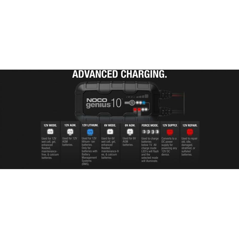 Découvrez le nouveau chargeur de batterie Genius10, l'un des chargeur les plus puissants, les plus performants, les plus économe et les plus compacts à ce jour. Chargeur d’une puissance de 10 ampères pour les batteries 6 et 12 volts, compatible avec les différents types de batteries Acide, Gel/AGM, Sans Entretien et Lithium. Il permet de recharger mêmes les batteries en décharge profonde ; l’idéal pour votre auto, moto ou les véhicules marins.