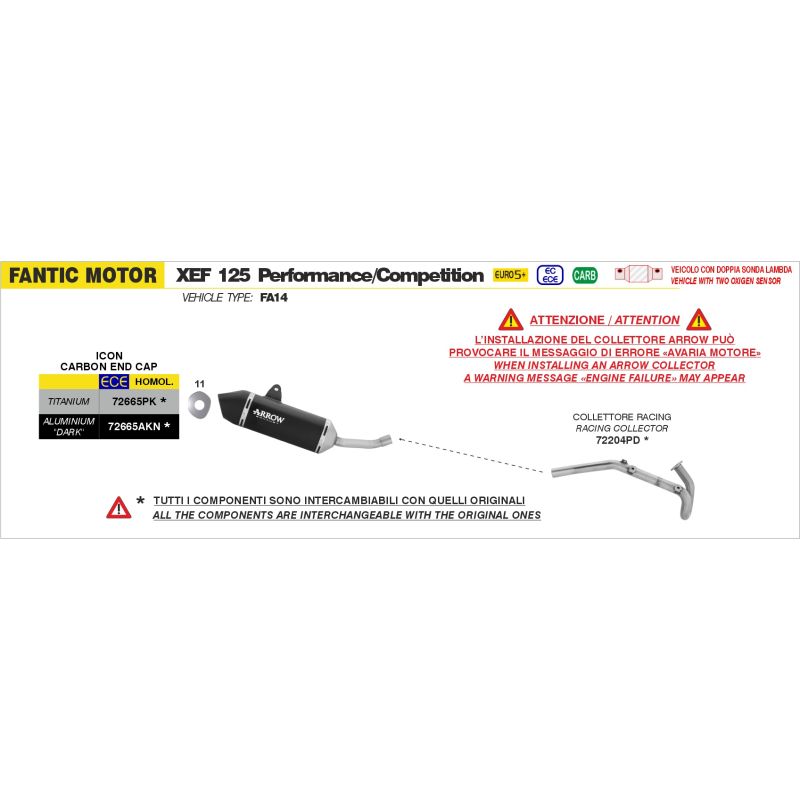 Silencieux d’échappement ARROW ICON homologué pour votre moto FANTIC XEF 125 PERFORMANCE / COMPETITION se monte directement sur votre collecteur d'origine ou arrow afin de comp...