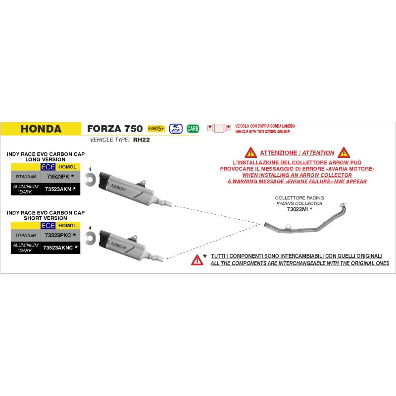 Collecteur décatalysé pour silencieux ARROW ou d'origine pour HONDA 750 FORZA afin de composer votre ligne complète d'échappement