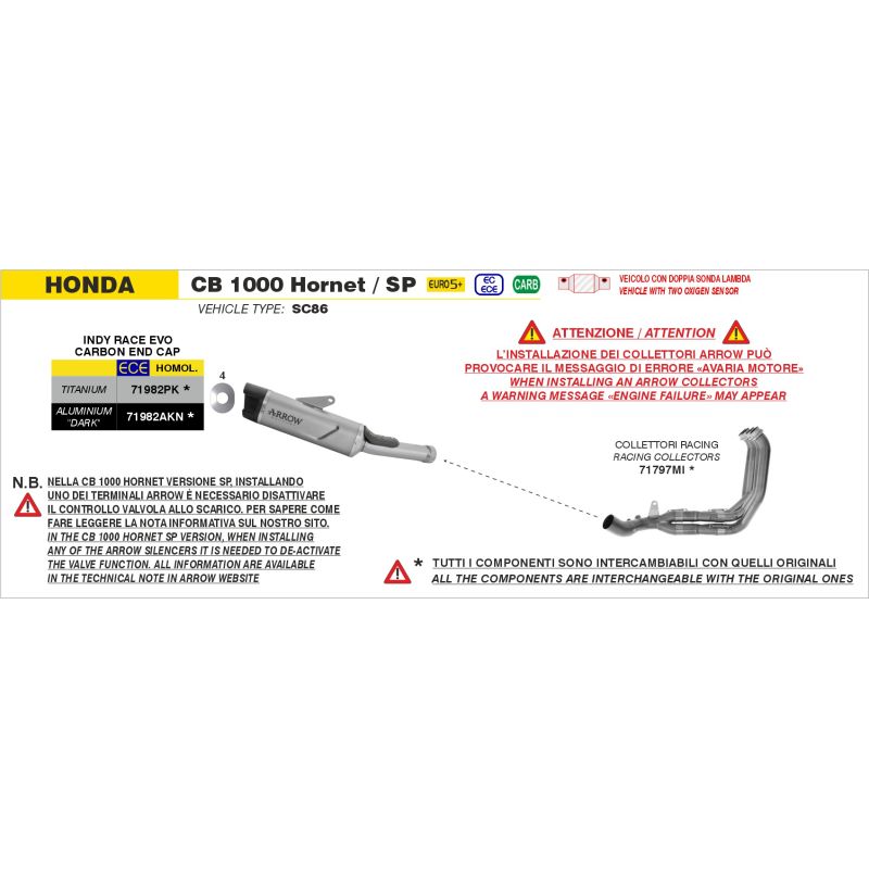 Échappement ARROW homologué pour HONDA CB 1000 HORNET se monte directement sur le collecteur d'origine ou arrow afin de composer votre ligne d'échappement