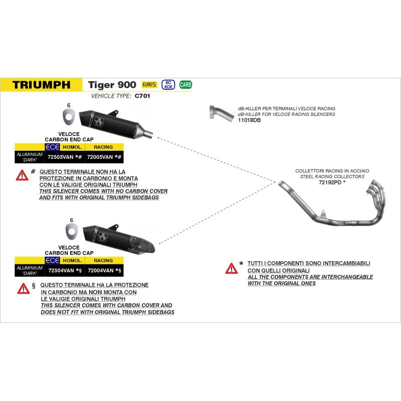 Échappement ARROW VELOCE en titane homologué avec db killer amovible pour TRIUMPH 850 / 900 TIGER se monte directement sur le collecteur origine Attention sans protection Carbon...
