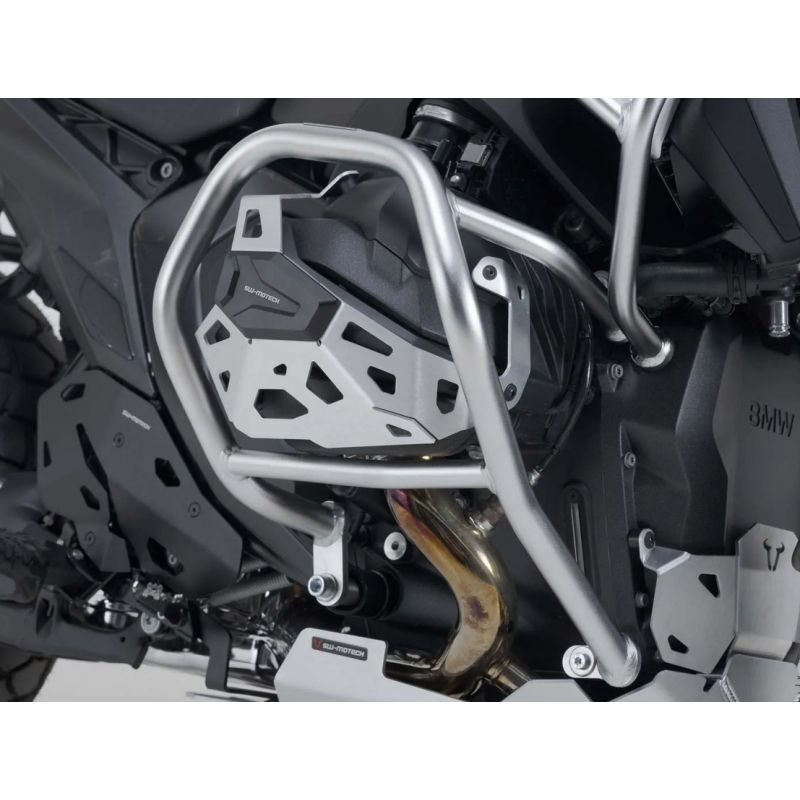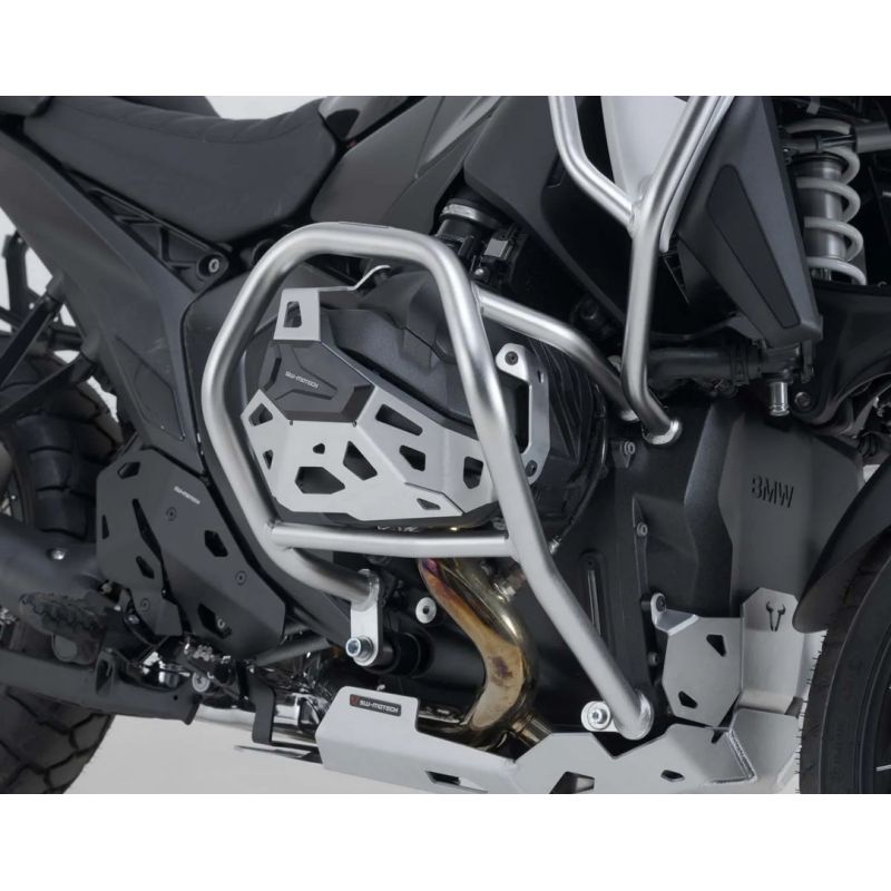 Des crashbars en acier inoxydable avec finition époxy, résistant aux intempéries et à la corrosion, et compatibles au modèle spécifique de la moto, sont disponibles en noir. Le traitement de surface est réalisé dans une installation ultramoderne située dans l'usine SW-MOTECH de Brno en République tchèque.