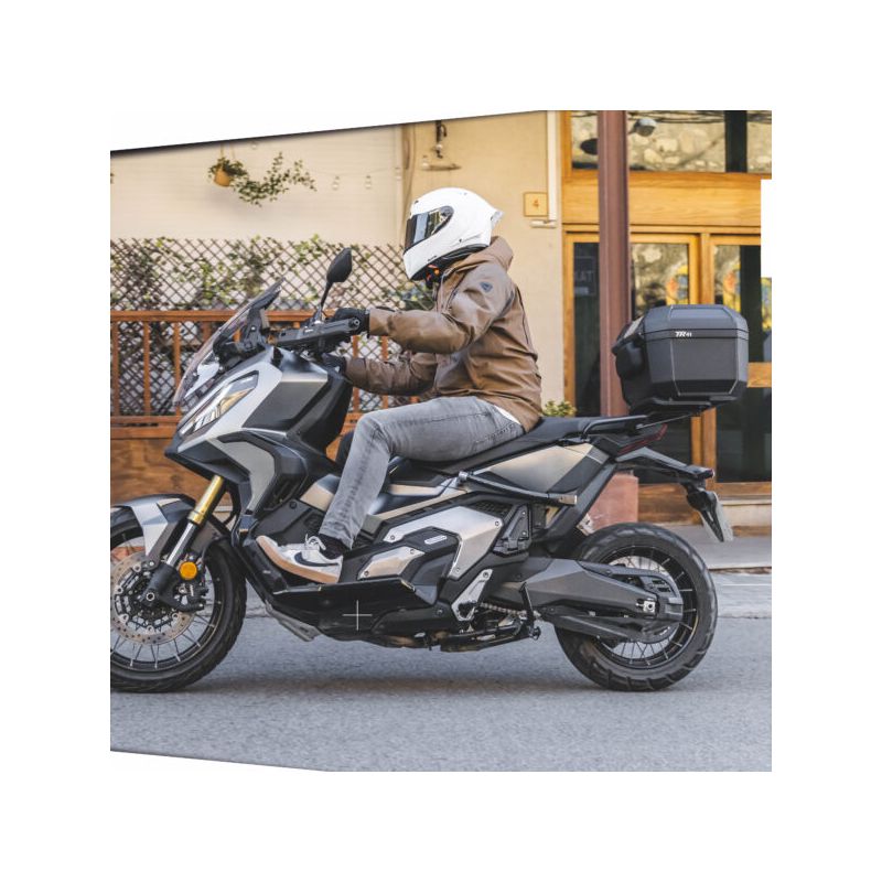 La valise arrière TR41 est un top case robuste conçue pour l’aventure. Les matériaux à haute résistance et la conception renforcée de la base, avec ses cadres supérieurs et la structure du corps central, en font un top case résistant et robuste. Comprend une serrure en acier inoxydable avec poignée intégrée et un couvercle en aluminium. Pouvant accueillir deux casques JET, il peut transporter une charge maximale de 5 kg.