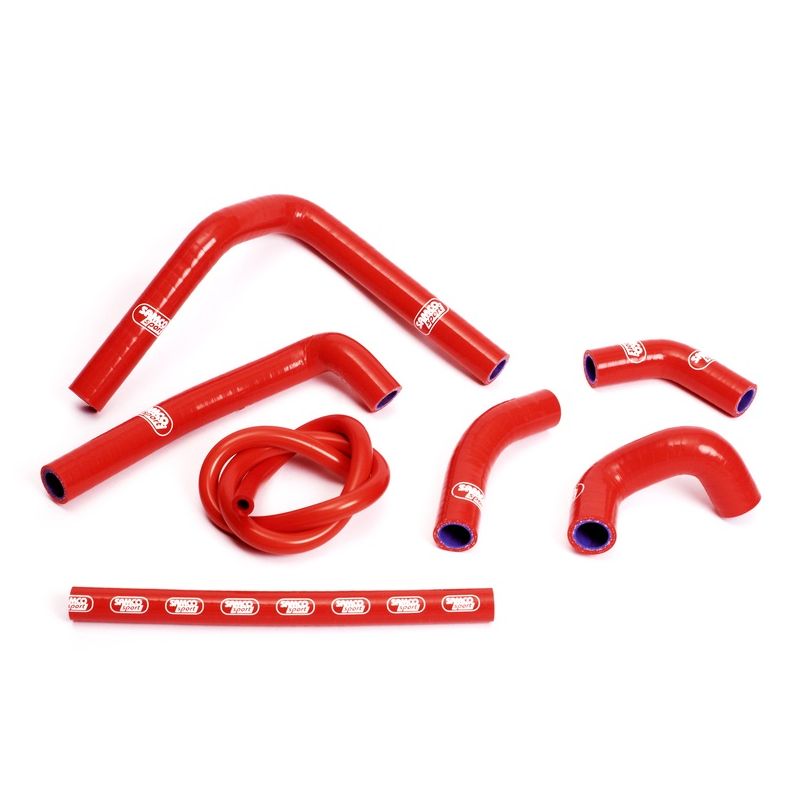 Les durites sont en silicone renforçé par du polyester. Résiste aux trés hautes températures (+ 200°) et améliore le refroidissement. Meilleur vieillissement et résistance à l'usure. Tout en améliorant le look de votre moto. Vendu par kit