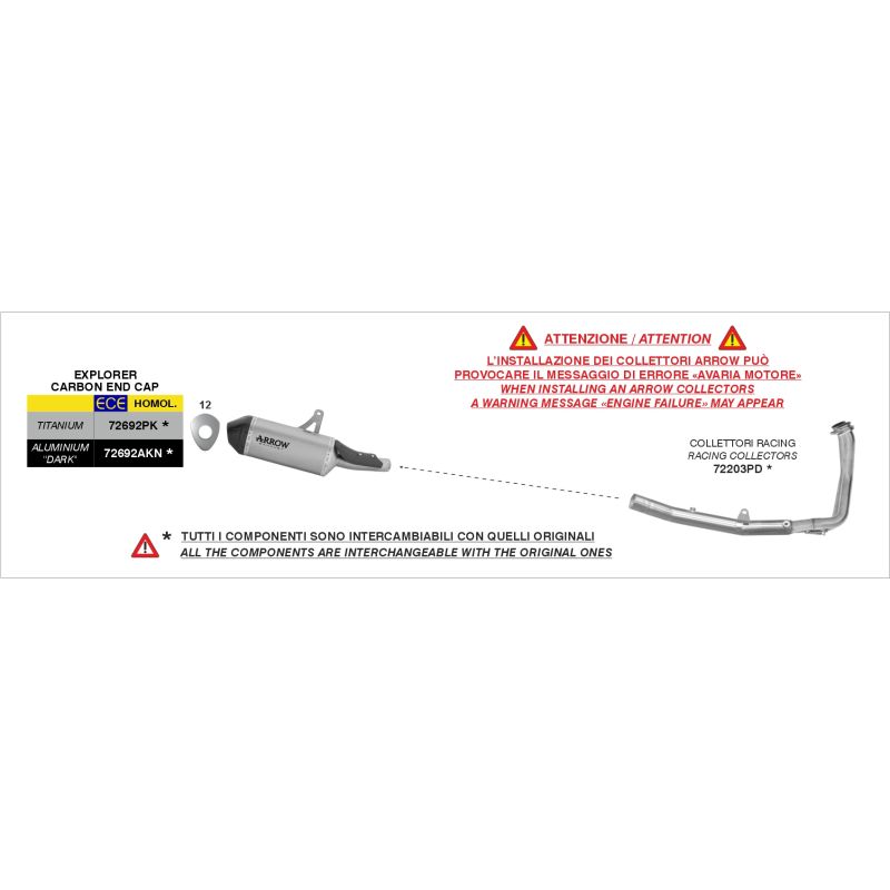 ARROW est toujours attentif aux exigences croissantes des usagers qui réclament la possibilité de s'équiper de systèmes d'échappements homologués, tout en garantissant de bonnes prestations et un look réussit.