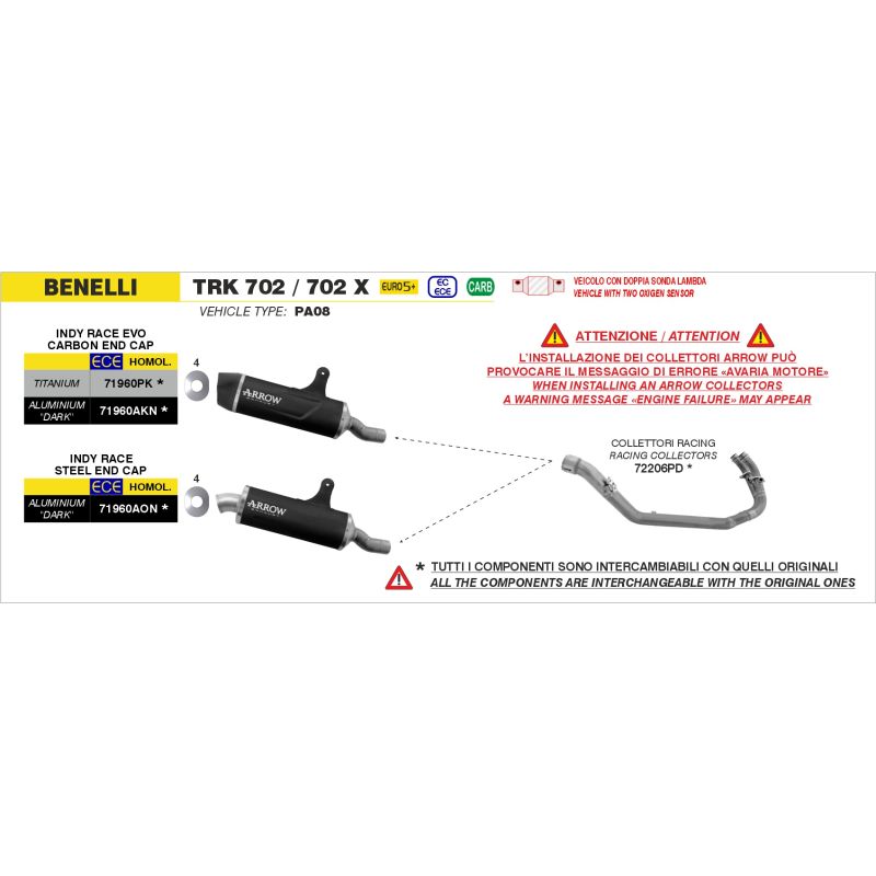 ARROW est toujours attentif aux exigences croissantes des usagers qui réclament la possibilité de s'équiper de systèmes d'échappements homologués, tout en garantissant de bonnes prestations et un look réussit.