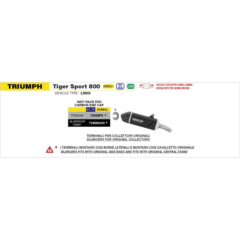 Échappement ARROW homologué pour TRIUMPH TIGER SPORT 800 se monte directement sur le collecteur d'origine