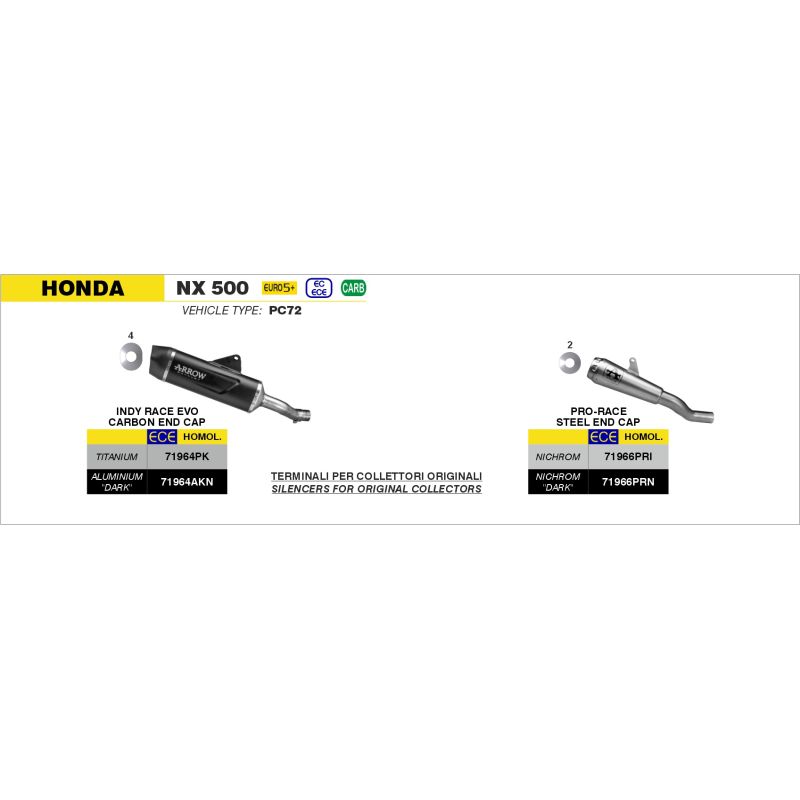 Échappement ARROW INDY RACE homologué pour moto HONDA CB 500 HORNET NX 500 se monte directement sur le collecteur d'origine ou avec l'option collecteur arrow afin de composer votre ligne complète d'échappement