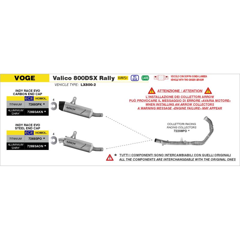 Échappement ARROW homologué pour VOGE VALICO 800 DSX RALLY se monte directement sur le collecteur d'origine