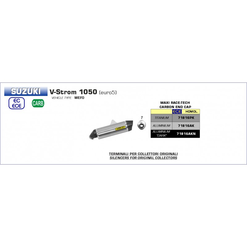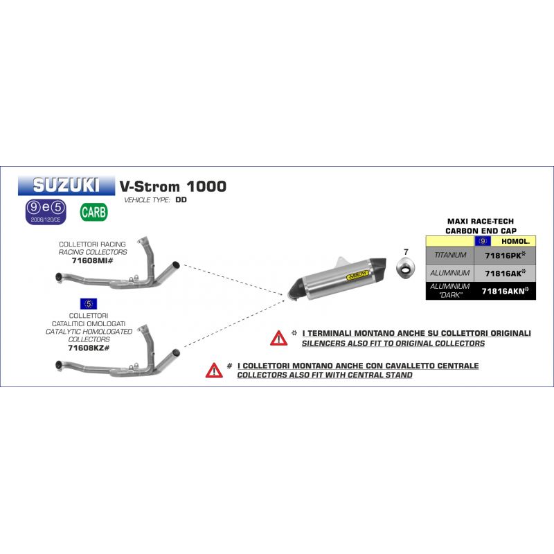 Échappement ARROW MAXI RACE-TECH homologué pour moto SUZUKI DL 1000 V-STROM DL 1050 V-STROM à monter directement sur votre collecteur d'origine ou collecteur arrow afin de composer votre ligne complète d'échappement