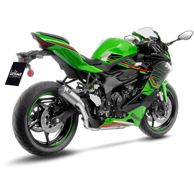 Échappement racing Leovince LV-CORSA S KAWASAKI ZX-4R/RR NINJA 2024-2026. Silencieux look moto GP inox noir ou carbone.