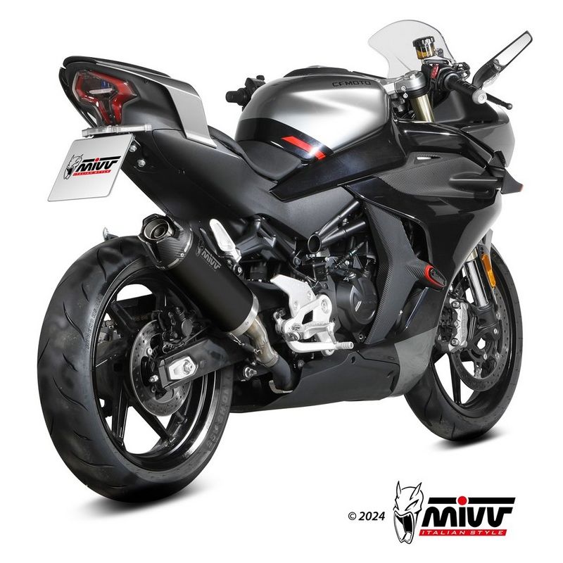échappement moto MIVV AK-1 inox noir avec embout carbone livré avec le nécessaire de montage, silencieux homologué