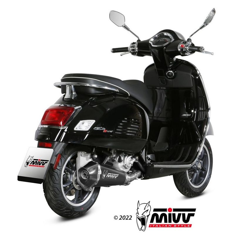 échappement MIVV DELTA RACE VESPA GTS 300 GTV 300 avec le nécessaire de montage, silencieux inox noir embout carbone homologué