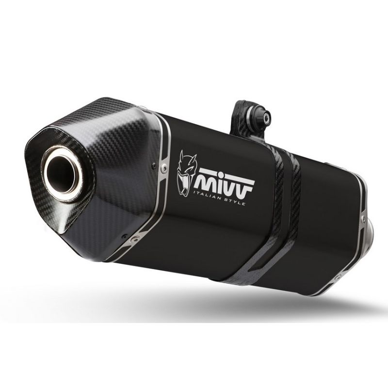 De plus, plusieurs sont les détails qui rendent unique le style de ce pot, comme l’embout en carbone, le collier à double file de rivets, l’entrée usinée pour un couplage de haute précision. Le logo Mivv sur le pot est enfin marqué par laser.