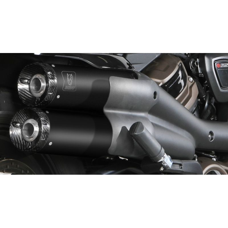 Les échappements de la gamme HR-1 ont une forme ronde assemblée avec des rivets noirs au look spécial. Il est complété à la sortie par un embout en alu verni noir céramique ou en carbone "twill 3K look".