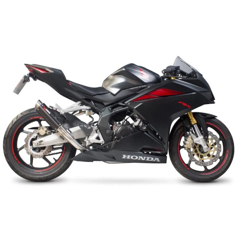 Scoprion, « la marque au dard et à la griffe », est un fabricant britannique d'échappements pour motos. Les produits sont conçus dans leurs ateliers à base de matériaux nobles et dans le plus grand respect de la tradition de fabrication de l'entreprise. Les silencieux RP-1 GP ont initialement été développés pour la compétition et sont aisément reconnaissables à leur design identique à ceux des motos de Grand-Prix. Leur structure en titane et fibre de carbone allège l'échappement et permet un gain de performance sur une courbe de puissance.