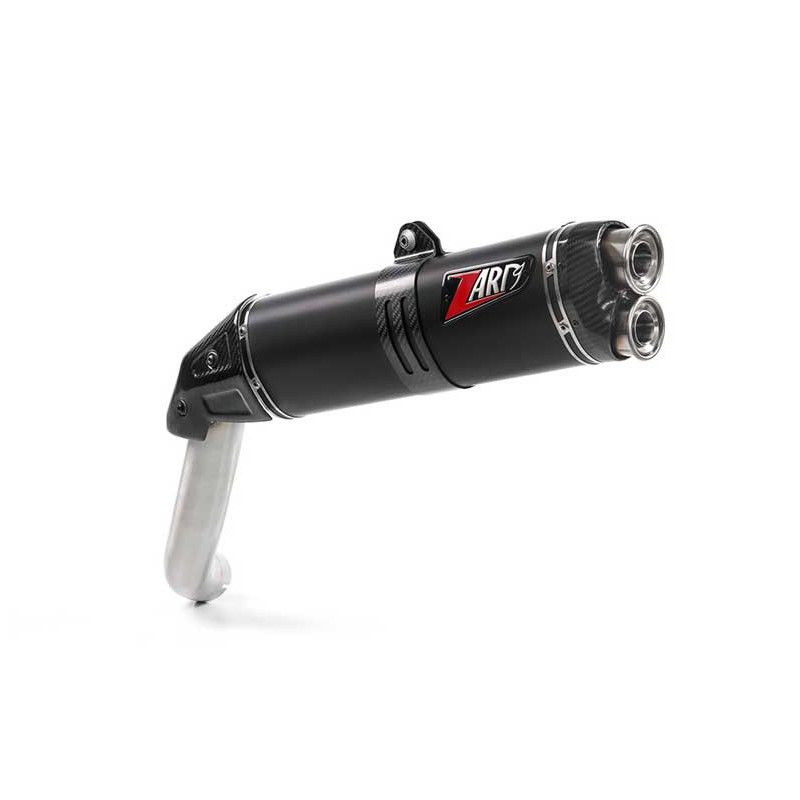 Silencieux Homologué E5+ – Acier inoxydable : poids 3,3 kg, gain de poids -2 kg, performances +1,1 CV, finition haut de gamme avec fibre de carbone.