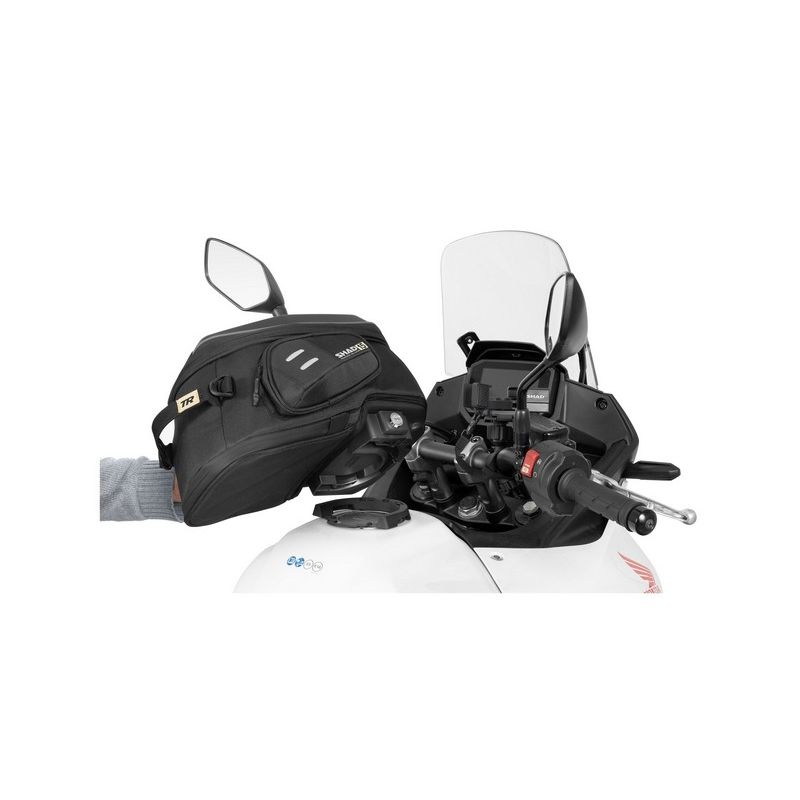 Le Click System de SHAD est l'évolution des systèmes de fixation pour sacoches de réservoir qui, en plus de sa facilité d'utilisation et de son intégration à la moto, se démarque par son push button qui permet de déverrouiller la sacoche rapidement, en appuyant simplement dessus.