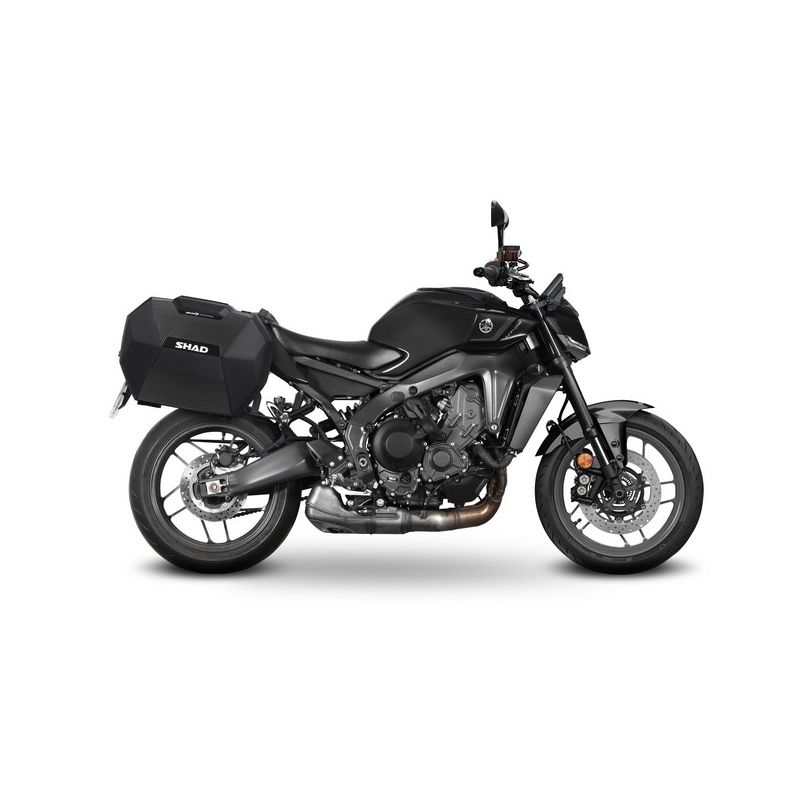 La fixation latérale pour valises moto SHAD 3P YAMAHA MT-09 est mieux intégré à la moto. Le cadre rectangulaire typique est réduit à un seul bras qui supporte les trois points (3P) de fixation de la valise.