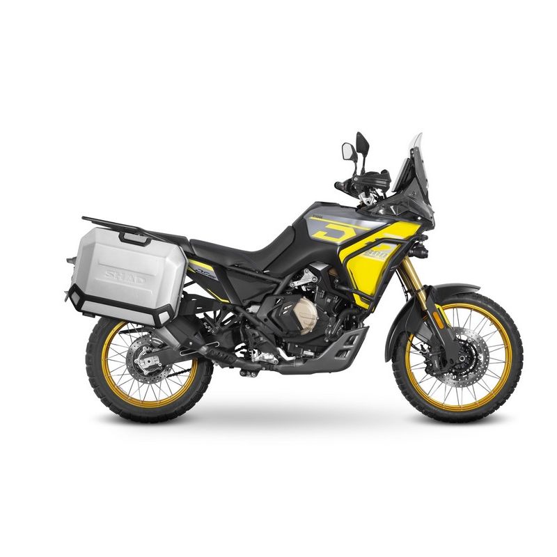 La fixation latérale pour valises moto SHAD 4P MORBIDELLI T1002VX est mieux intégré à la moto. Le cadre rectangulaire typique est réduit à un seul bras qui supporte les trois points (4P) de fixation de la valise.