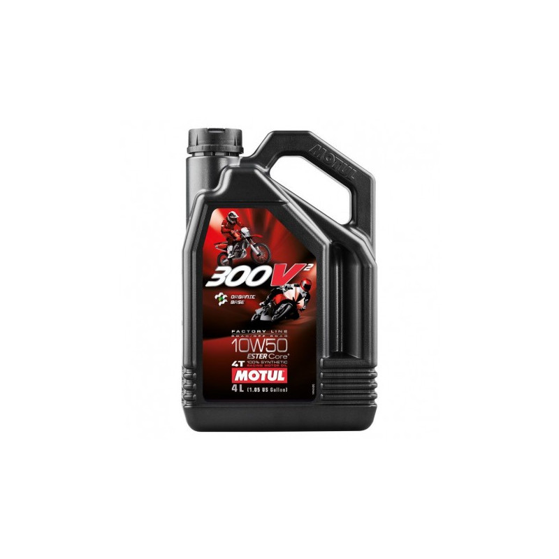 Lubrifiant 4T 100% Synthèse pour motos de compétition. Les produits de la gamme 300V Factory Line bénéficient de la dernière innovation ESTER Core® pour apporter de la puissance supplémentaire en réduisant les frottements du moteur sans dégrader le comportement de l'embrayage.