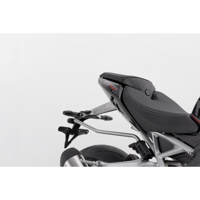 Conçues spécialement pour les motos sportives, les sacoches latérales n'influent que très peu sur les performances de conduite. Si vous vous déplacez sans bagages, les supports amovibles s'enlèvent en un tour de main ; seules les fixations à peine visibles restent alors sur la moto.