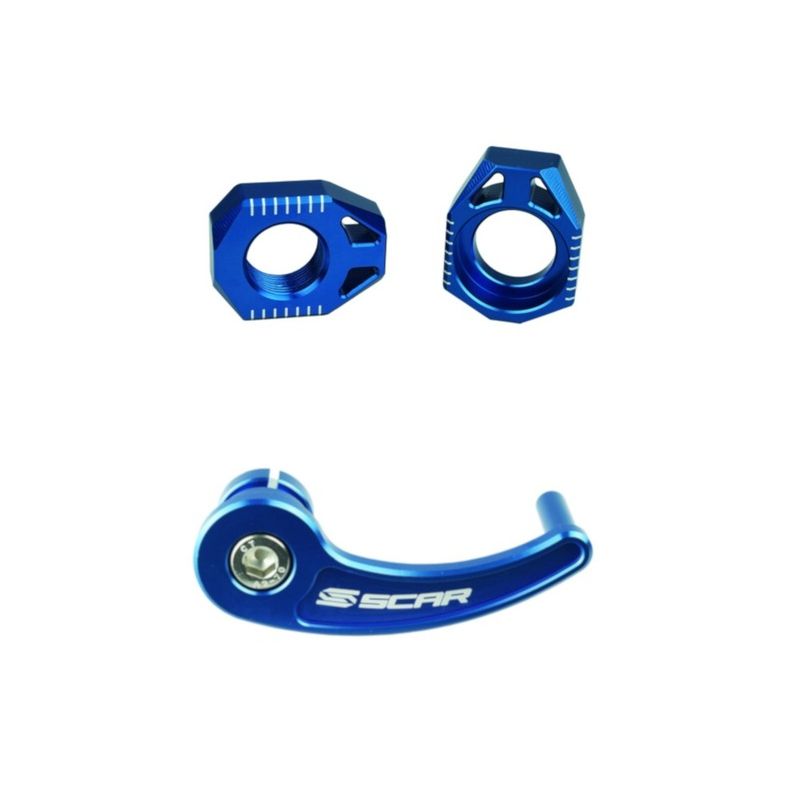 Kit tendeur de chaîne et Tire-axe arrière SCAR bleu Sherco