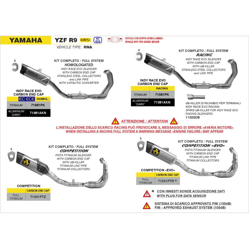 Ligne complète d'Échappement ARROW compétition avec silencieux pista titane et db killer amovible