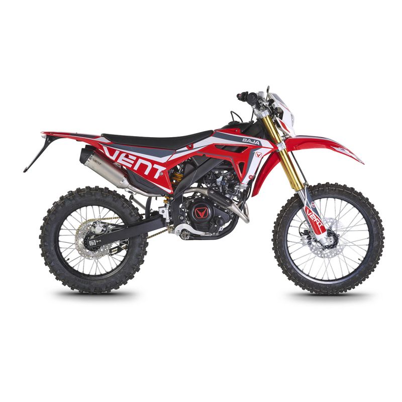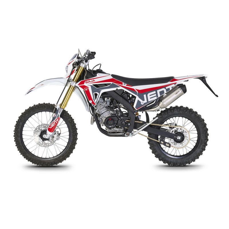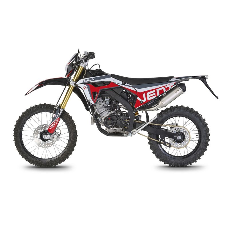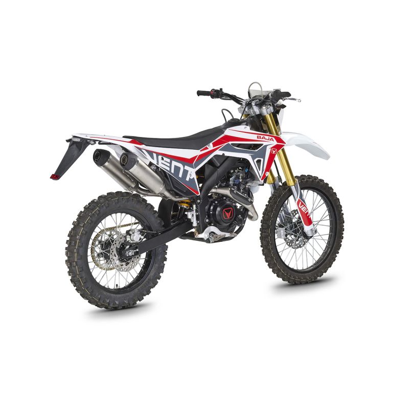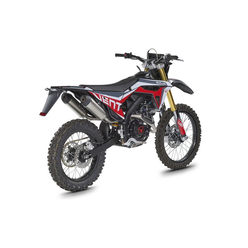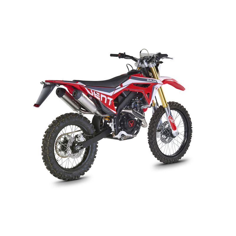 BAJA 125 4 temps change de look et de structure, une moto importante pour l’histoire de l’entreprise qui se renouvelle à 100% grâce aussi à la nouvelle homologation Euro5. Une moto conçue à Introbio et dérivée de l’expérience de plus de trente ans de courses de tout-terrain au niveau mondial : elle est totalement renouvelée tout en restant fidèle aux caractéristiques qui en font un leader dans son segment. Le nouveau moteur Minarelli 125 4 temps à distribution variable garantit des performances supérieures à celles de la version précédente, tout en limitant la consommation et les émissions. La richesse de l’équipement comprend le cadre périmétrique VENT 6.0, robuste et renouvelé, la fourche inversée, l’embrayage à glissement et le système CBS de freinage combiné, essentiels pour garantir une sécurité maximale dans toutes les conditions de conduite et sur tous les terrains. Ce sont toutes ces caractéristiques qui, associées à un look qui fait clairement référence aux couleurs officielles de VENT, également utilisées sur les motos de compétition, font de la BAJA 125 4 temps une moto tout-terrain extrêmement performante mais, en même temps, le compagnon de voyage idéal pour la vie quotidienne. Vous pouvez la fouetter sur les chemins de terre pour le plaisir, et la conduire plus doucement en ville. C’est la moto idéale pour partir à l’aventure, même à 16 ans!