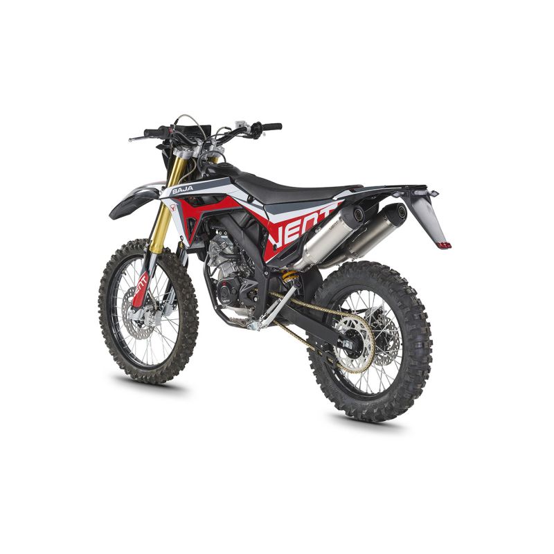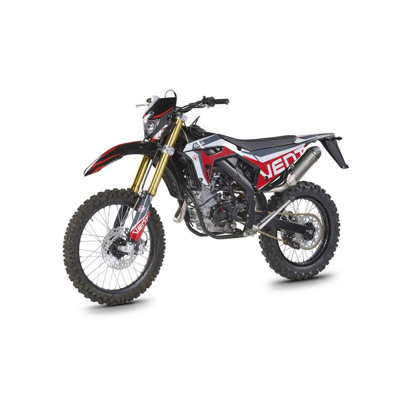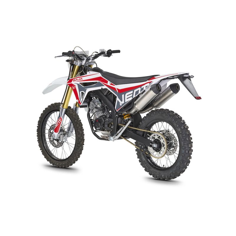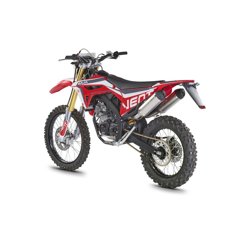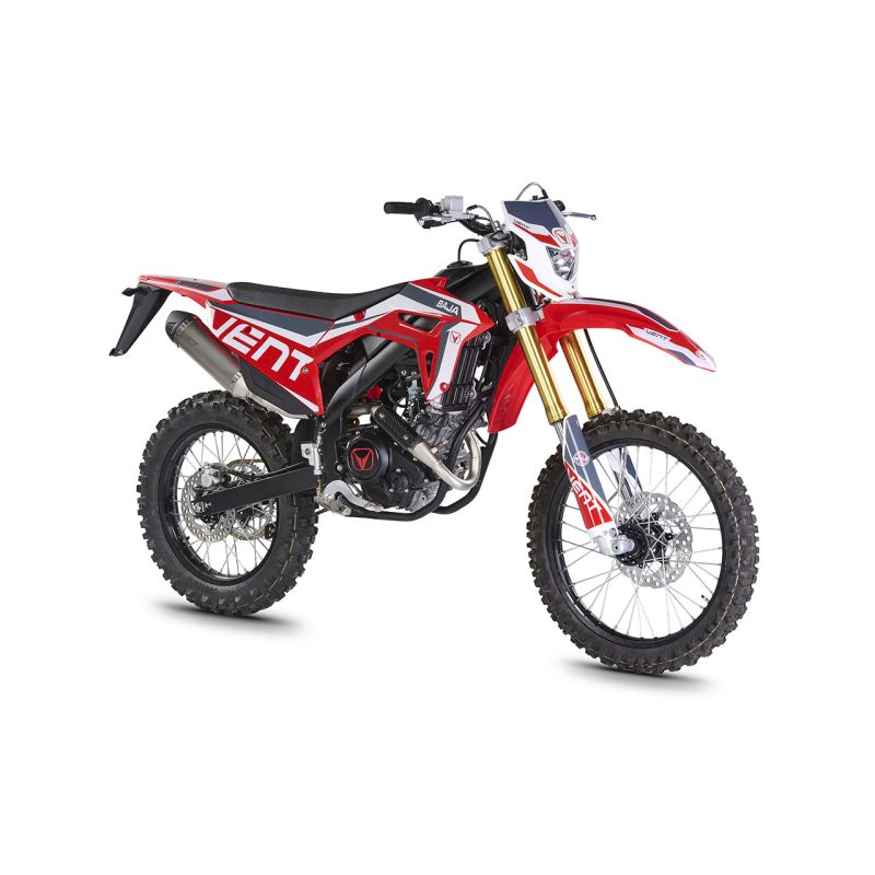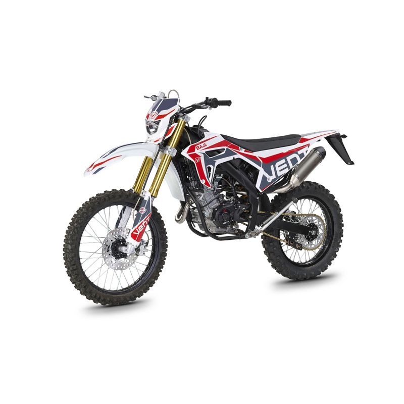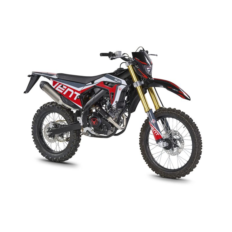BAJA 125 4 temps change de look et de structure, une moto importante pour l’histoire de l’entreprise qui se renouvelle à 100% grâce aussi à la nouvelle homologation Euro5. Une moto conçue à Introbio et dérivée de l’expérience de plus de trente ans de courses de tout-terrain au niveau mondial : elle est totalement renouvelée tout en restant fidèle aux caractéristiques qui en font un leader dans son segment. Le nouveau moteur Minarelli 125 4 temps à distribution variable garantit des performances supérieures à celles de la version précédente, tout en limitant la consommation et les émissions. La richesse de l’équipement comprend le cadre périmétrique VENT 6.0, robuste et renouvelé, la fourche inversée, l’embrayage à glissement et le système CBS de freinage combiné, essentiels pour garantir une sécurité maximale dans toutes les conditions de conduite et sur tous les terrains. Ce sont toutes ces caractéristiques qui, associées à un look qui fait clairement référence aux couleurs officielles de VENT, également utilisées sur les motos de compétition, font de la BAJA 125 4 temps une moto tout-terrain extrêmement performante mais, en même temps, le compagnon de voyage idéal pour la vie quotidienne. Vous pouvez la fouetter sur les chemins de terre pour le plaisir, et la conduire plus doucement en ville. C’est la moto idéale pour partir à l’aventure, même à 16 ans!
