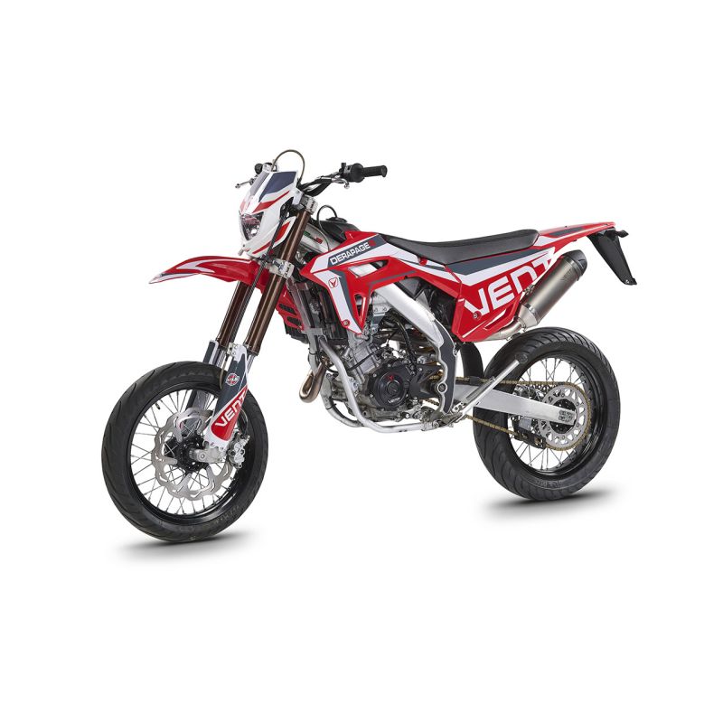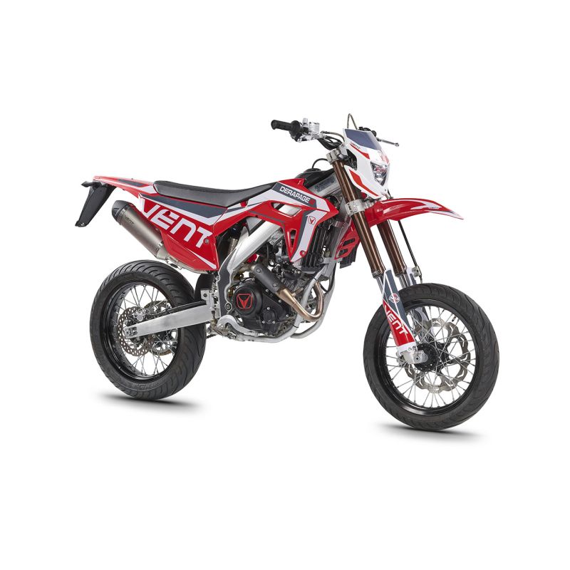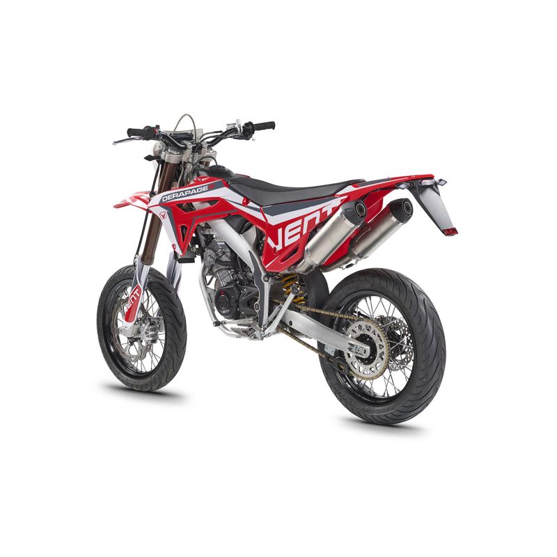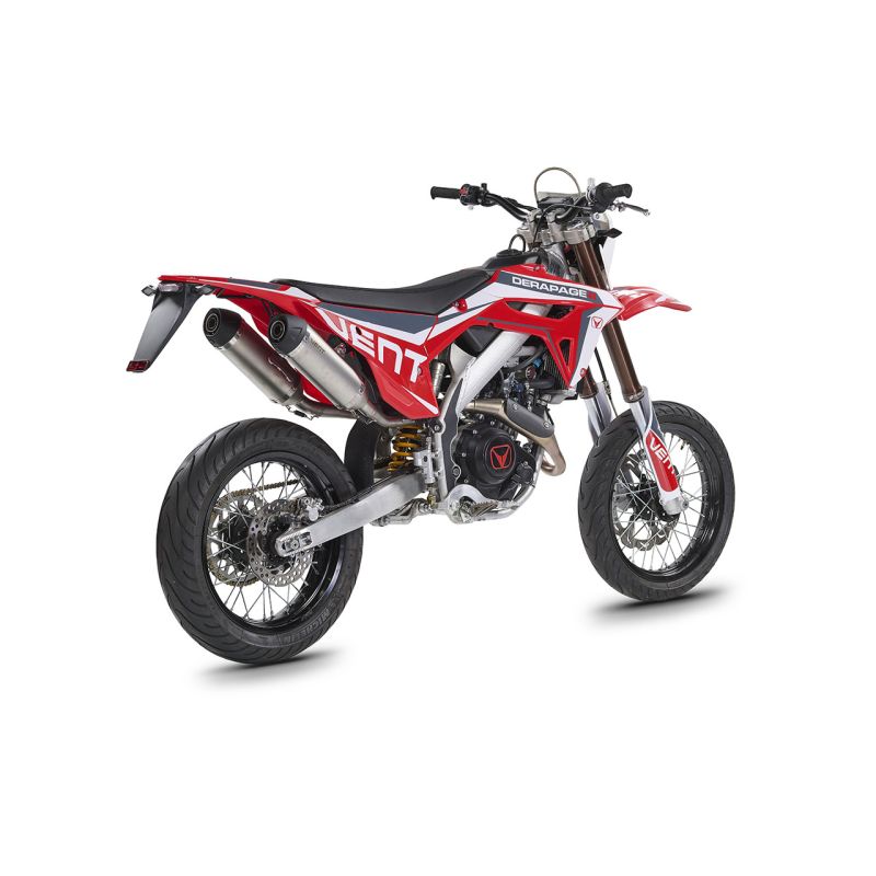 La nouvelle DERAPAGE RR 125 est une motarde extrêmement moderne, ultra-raffinée et résolument performante : nous parlons d’une moto exclusive! L’élément fondamental de ce modèle est le tout nouveau moteur Minarelli 125 4 temps homologué Euro5 : un moteur brillant et extrêmement fiable, caractérisé par le nouveau système de distribution variable. Le cadre périmétrique à double berceau VENT 6.0 avec section arrière amovible et le bras oscillant sont en aluminium, tandis que la fourche hydraulique inversée avec tubes R16V de 41 mm et le mono-amortisseur hydraulique (avec tringlerie HM) sont réglables en précharge et en détente, toutes des caractéristiques exclusives de la version RR. Associé au nouveau et puissant système de freinage réalisé par BCA (assisté par un système de répartition des freins CBS) et à l’embrayage à glissement, le DERAPAGE RR 125 est une moto vraiment à l’avant-garde, agréable et facile à manier sur la route, capable de créer des souvenirs inoubliables. L’équipement de série est complété par le double silencieux et le magnifique guidon de 28 mm Black Finish avec plaques de direction dédiées.