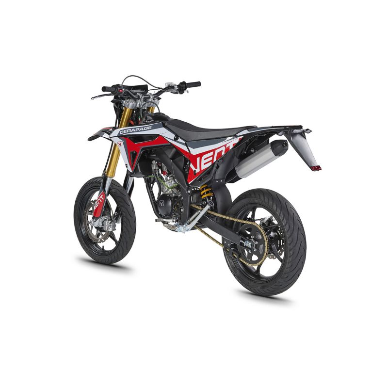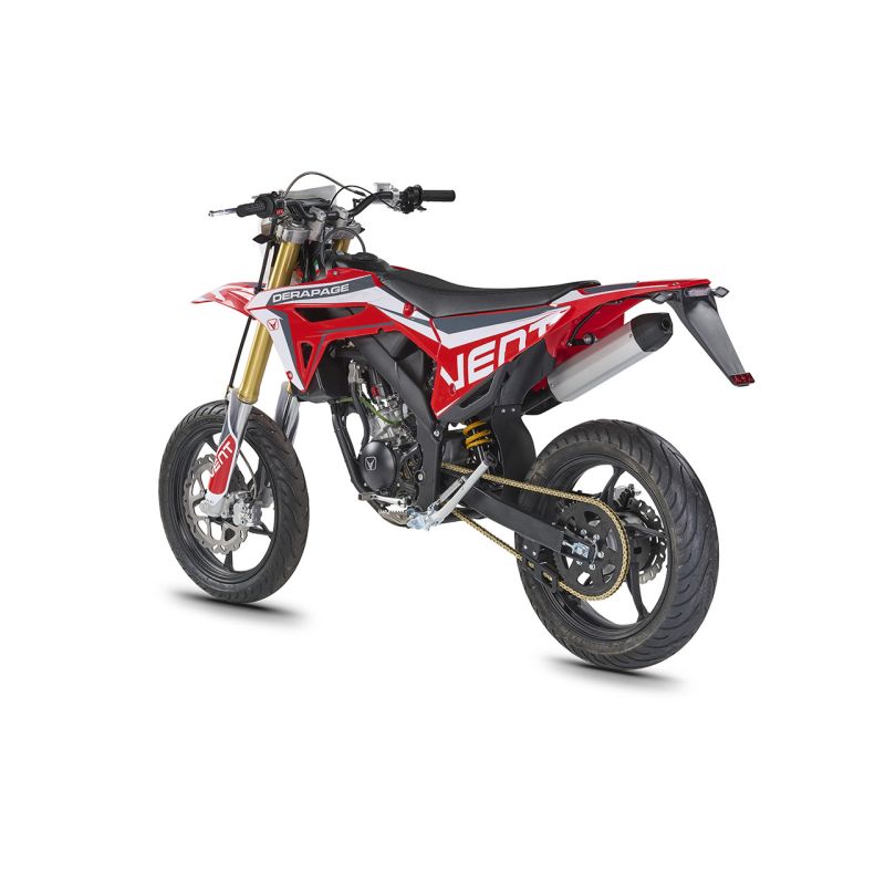 Votre première expérience de motocyclisme restera dans votre cœur pour toujours ! DERAPAGE 50 est la Supermotard qui permet d’affronter le trafic quotidien pour aller à l’école tous et s’amuser avec les amis en toute sécurité, sans sacrifier le style de la vraie course grâce à la réplique graphique de l’équipe VENT qui court dans le Championnat National de Supermotard et à l’équipement technique avancé digne d’une moto de plus forte cylindrée. Le vif moteur Minarelli 50 cc 2 temps de dernière génération, le solide cadre périmétrique associé à la suspension inversée de 41 mm et le puissant système de freinage avec disque de 290 mm, font de DERAPAGE 50 la moto de référence sur le marché en termes de performances, de fiabilité et de sécurité.