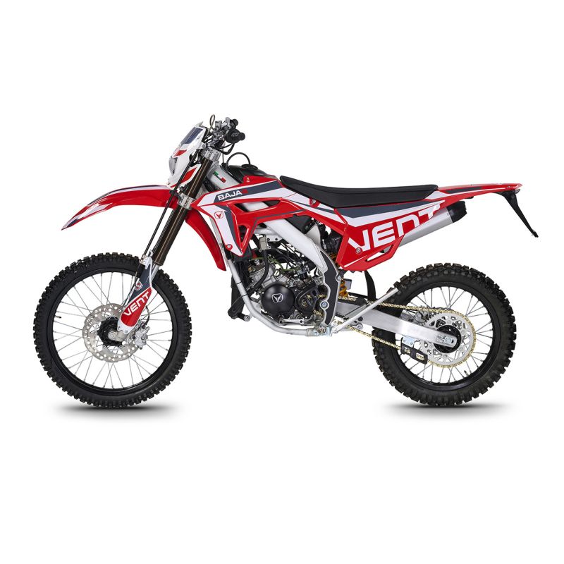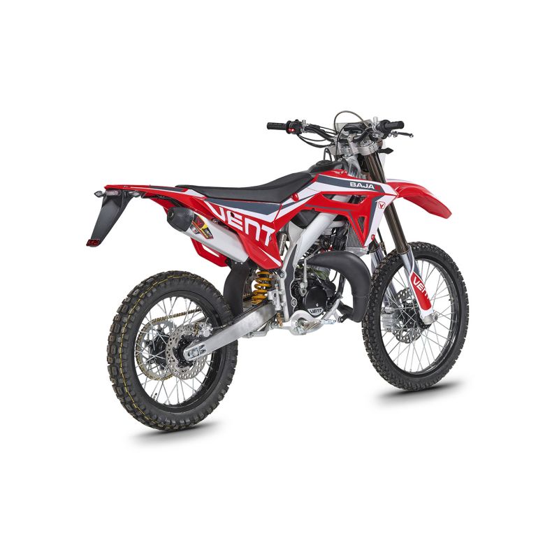Conçue et construite grâce au patrimoine technique et aux connaissances acquises en trente ans d’expérience dans les compétitions off-road au niveau international, BAJA RR 50 impressionne et étonne grâce à une configuration exclusive qui s’exprime par des solutions techniques raffinées et en même temps avancées qui la rendent vraiment unique sur le marché, dans sa catégorie : le cadre périmétrique et le bras oscillant sont en aluminium pour rendre la moto encore plus légère, tandis que le système de freinage surdimensionné est fabriqué par l’italien BCA, la suspension avant inversée de 41 mm et le nouvel amortisseur unique avec liaison HM-link, sont tous deux réglables. Ces caractéristiques rendent les performances de la BAJA RR 50 excellentes dans toutes les conditions de conduite, sur la route lorsque l’utilisation est plus “modérée” et dans le respect total du code, en dehors de la route lorsque le “cran” est libéré et permet à la moto de s’exprimer au mieux sur le terrain qui lui est le plus favorable. Le BAJA RR 50 est complété par un guidon 28 mm Black Finish avec des plaques de tête dédiées et des graphiques qui rappellent les couleurs de l’équipe officielle d’Enduro VENT.