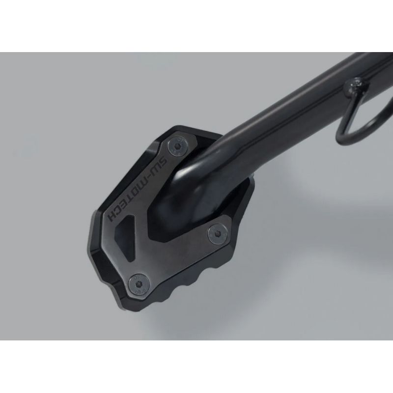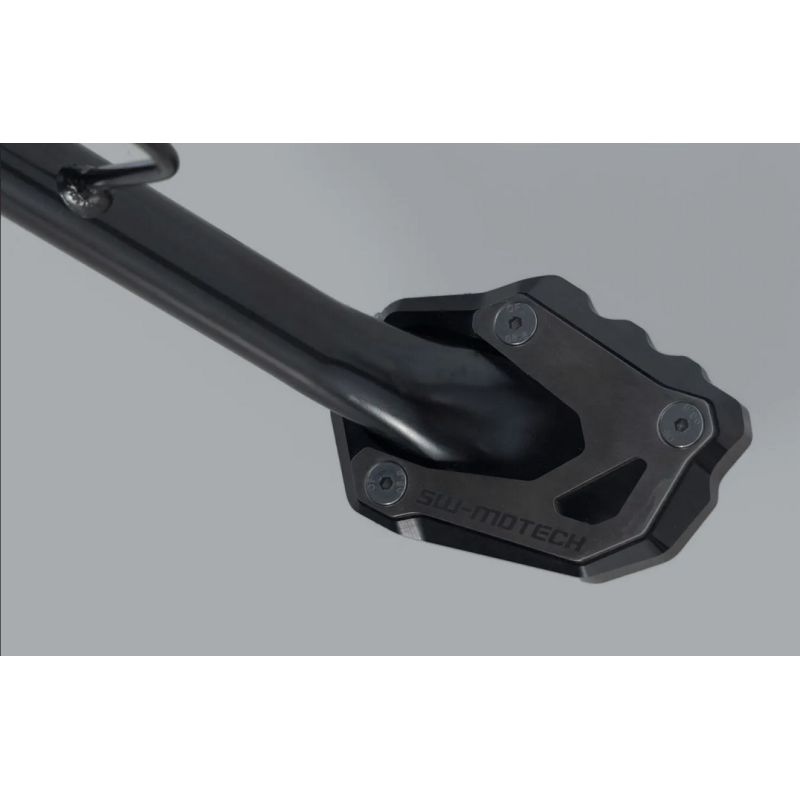 La large surface d'appui du pied de béquille latérale SW MOTECH offre une tenue et un maintien sécurisé