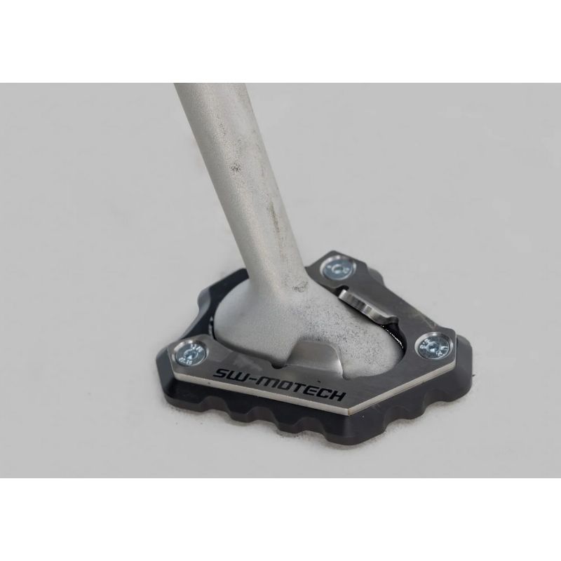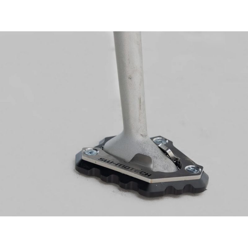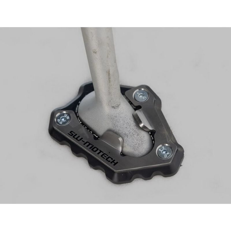 La large surface d'appui du pied de béquille latérale SW MOTECH offre une tenue et un maintien sécurisé