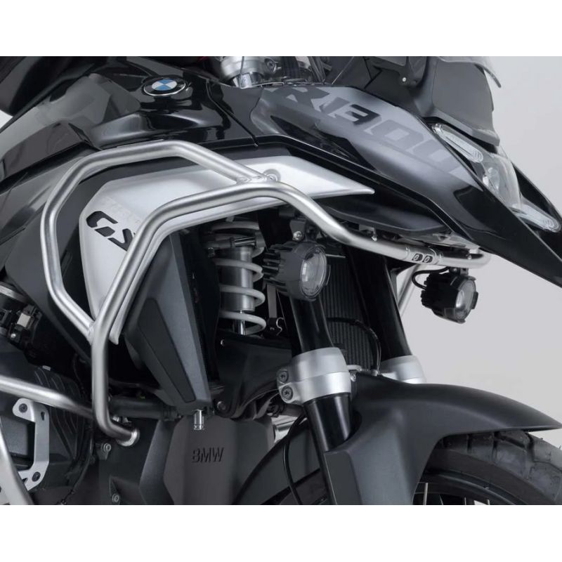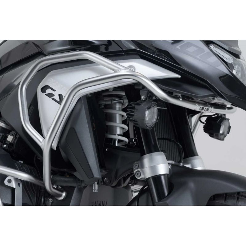 Avec ces attaches, les feux moto de chez sw motech EVO peuvent être montés sur des crashbars ou d'autres composants