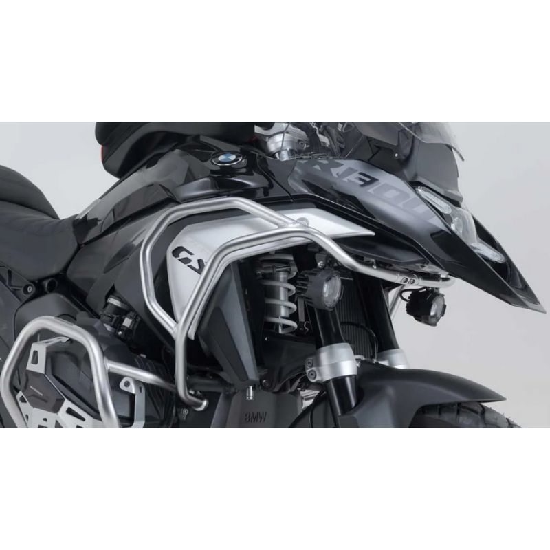 Des crashbars en acier inoxydable avec finition époxy, résistant aux intempéries et à la corrosion, et compatibles au modèle spécifique de la moto, sont disponibles en noir. Le traitement de surface est réalisé dans une installation ultramoderne située dans l'usine SW-MOTECH de Brno en République tchèque.