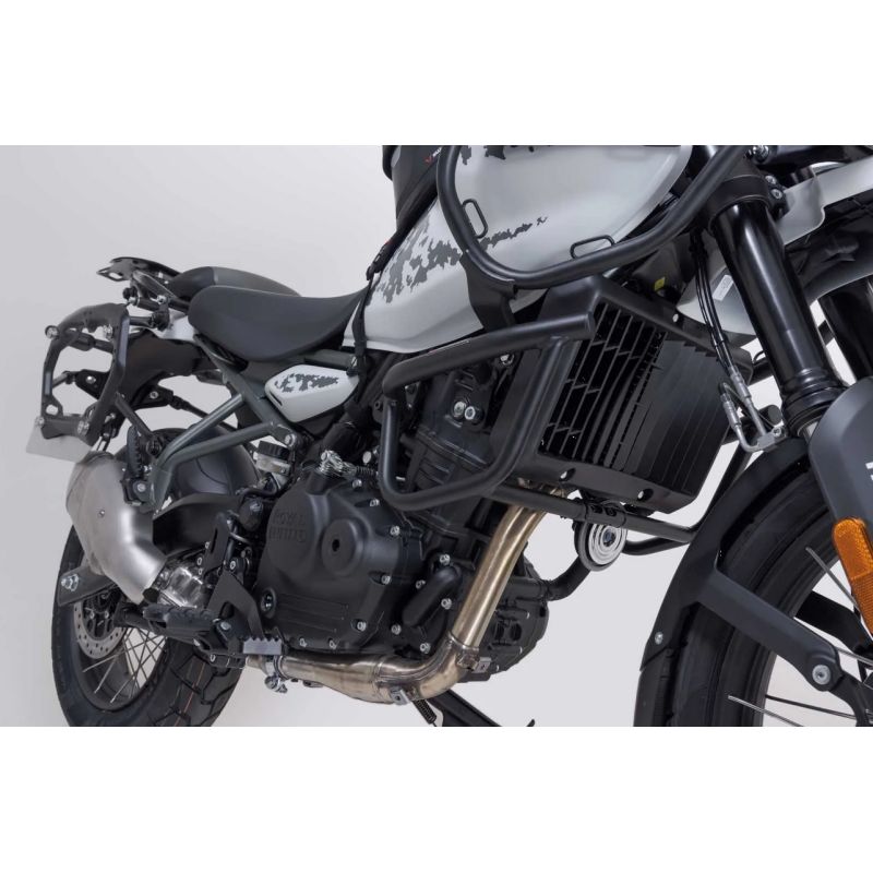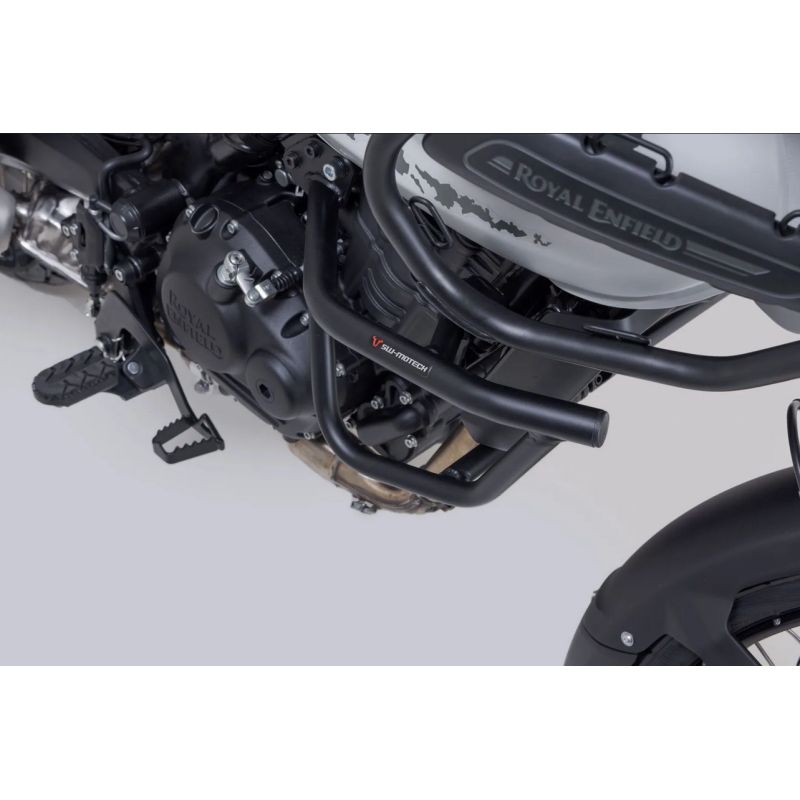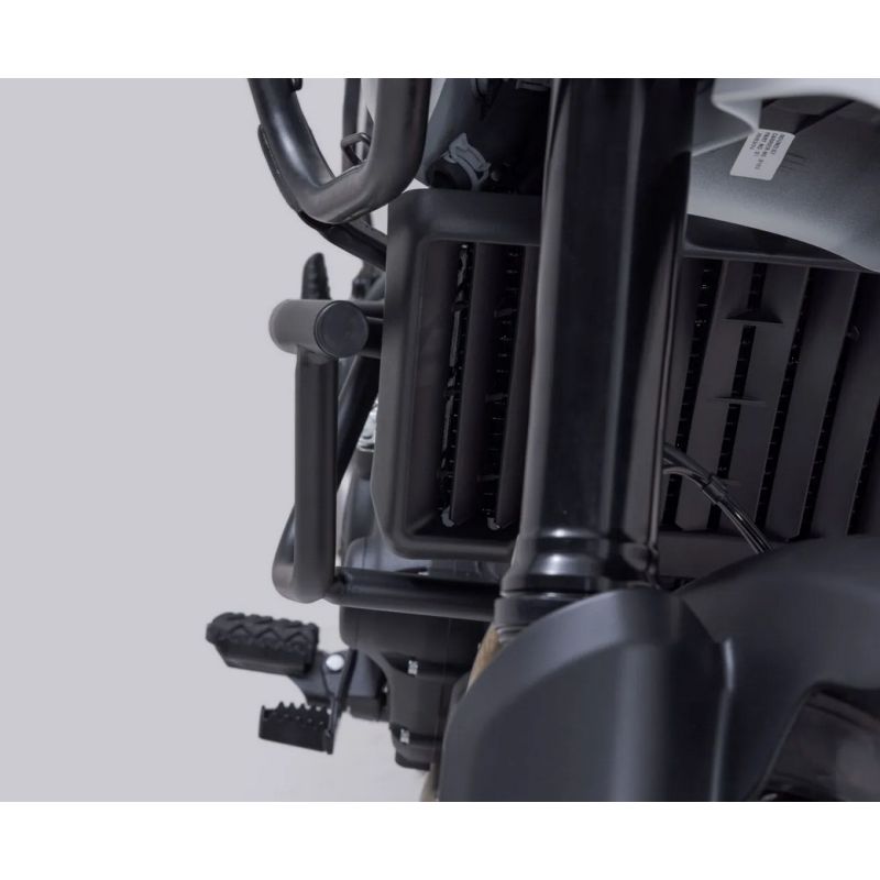 Des crashbars en acier inoxydable avec finition époxy, résistant aux intempéries et à la corrosion, et compatibles au modèle spécifique de la moto, sont disponibles en noir. Le traitement de surface est réalisé dans une installation ultramoderne située dans l'usine SW-MOTECH de Brno en République tchèque.
