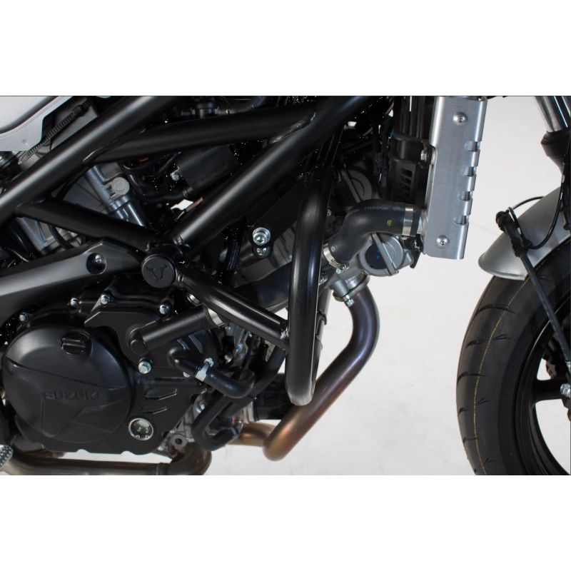 Des crashbars en acier inoxydable avec finition époxy, résistant aux intempéries et à la corrosion, et compatibles au modèle spécifique de la moto, sont disponibles en noir. Le traitement de surface est réalisé dans une installation ultramoderne située dans l'usine SW-MOTECH de Brno en République tchèque.
