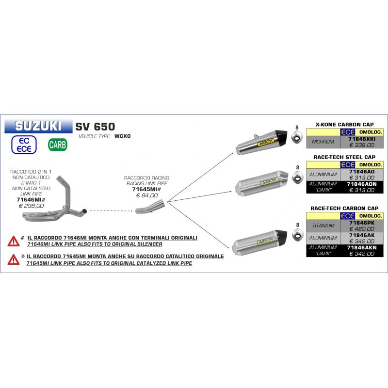 Raccord d'échappement ARROW pour collecteur d'origine ou décatalyseur arrow pour moto SUZUKI SV 650