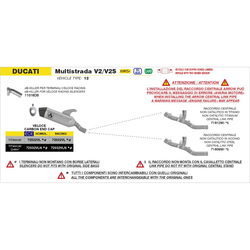 Échappement ARROW VELOCE homologué pour votre moto DUCATI MULTISTRADA V2 V2S