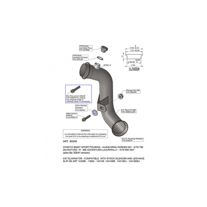 raccord d'échappement décatalysé pour CF MOTO KTM Husqvarna. Ce raccord d'échappement s'adapte sur les silencieux LEOVINCE ou d’origine.