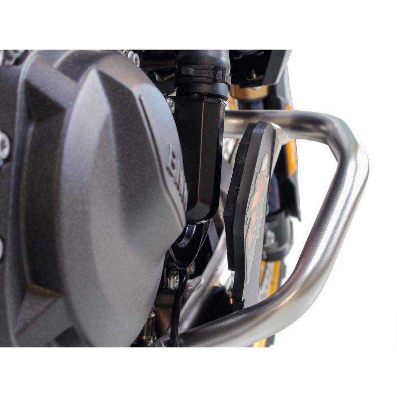 Nous garantissons la COMPATIBILITE AVEC LA BEQUILLE CENTRALE D’ORIGINE et avec les CRASH-BARS D’ORIGINE. Pour les autres marques, des découpes peuvent s’avérer nécessaires.
