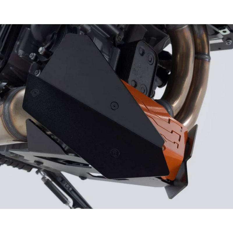 Le sabot moteur en alliage d'aluminium de qualité qui montre toutes ses qualités en off-road, apporte à la fois plus de sécurité à la moto et un look particulier