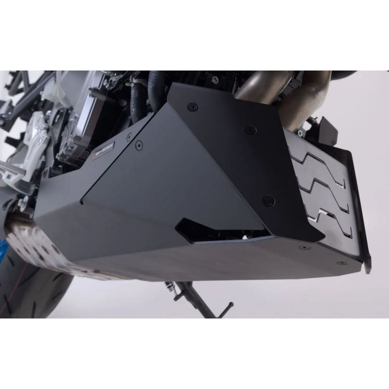Le sabot moteur en alliage d'aluminium de qualité qui montre toutes ses qualités en off-road, apporte à la fois plus de sécurité à la moto et un look particulier