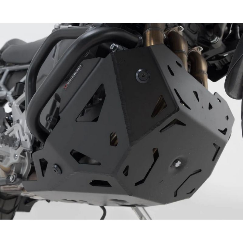 le sabot moteur en alliage d'aluminium de qualité qui montre toutes ses qualités en off-road, apporte à la fois plus de sécurité à la moto et un look particulier